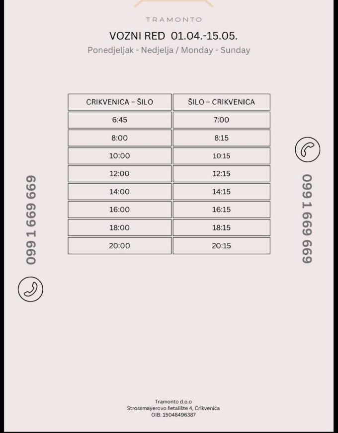 Kao i do sada djeca do 3 godine i umirovljenici (Grada Crikvenice i Općine Dobrinj) imaju besplatnu vožnju, a domicilno stanovništvo - stanovnici Grada Crikvenice i Općine Dobrinj imaju pravo na popust od 50%.